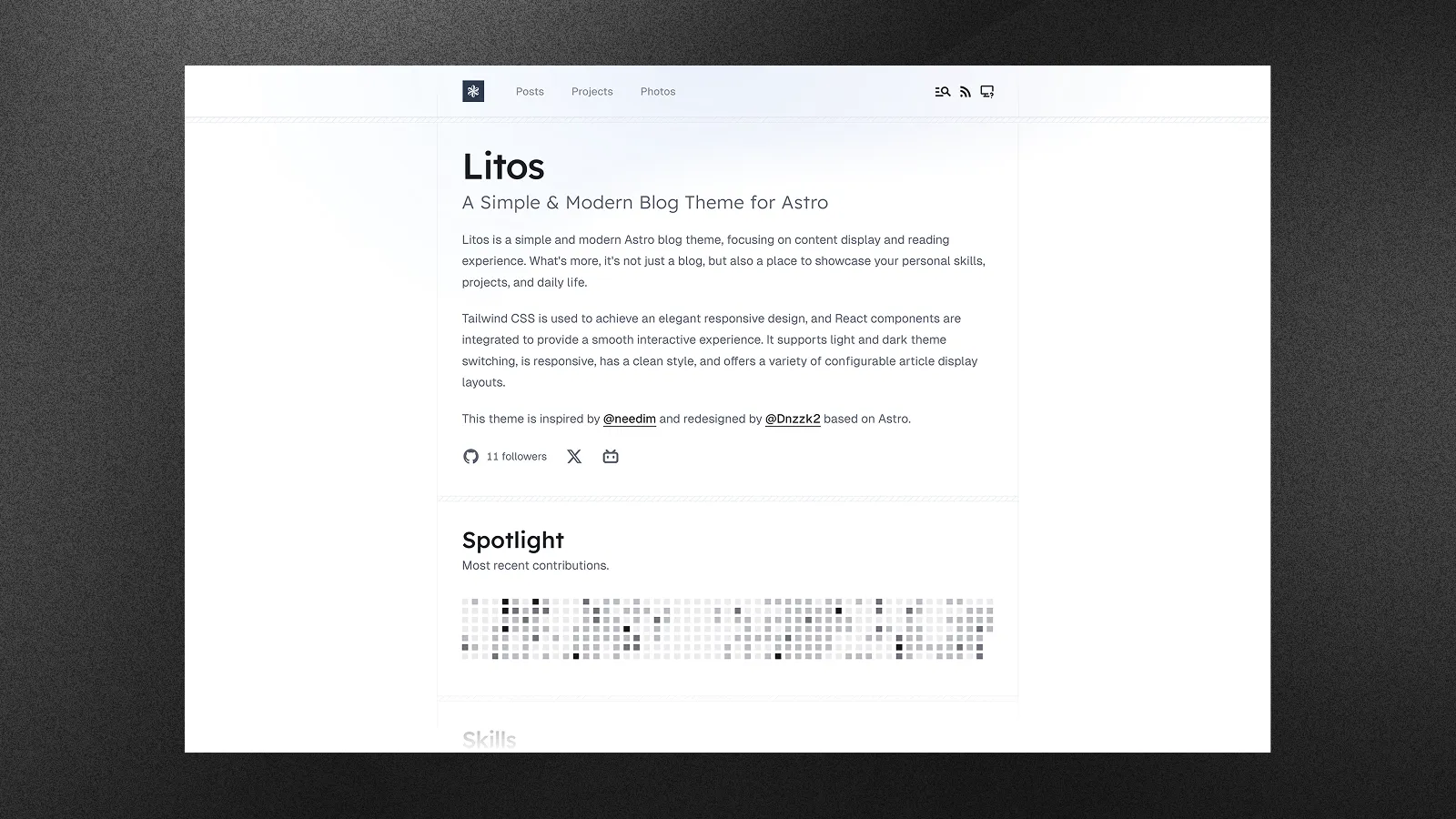 Litos 是一个基于 Astro 构建的现代高性能博客主题。