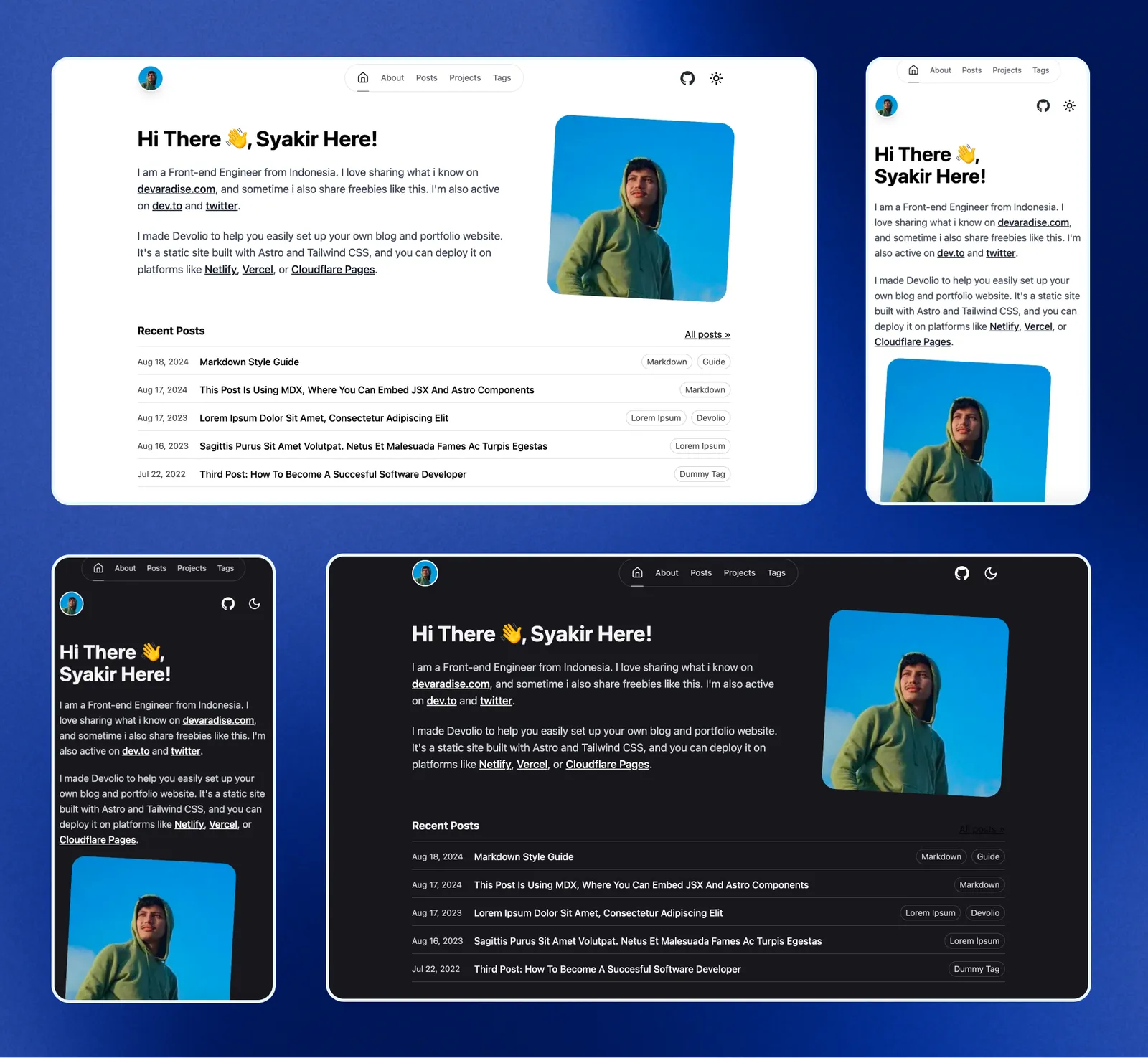 演示站点:https://devolio.devaradise.com/