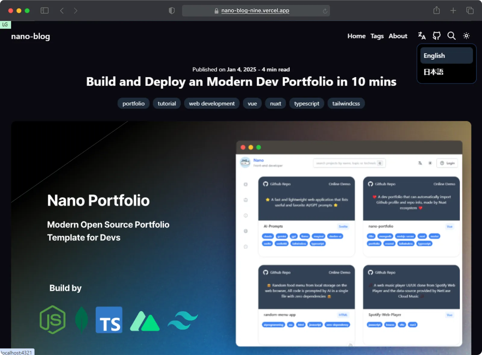 演示站点:https://nano-blog-bice.vercel.app/